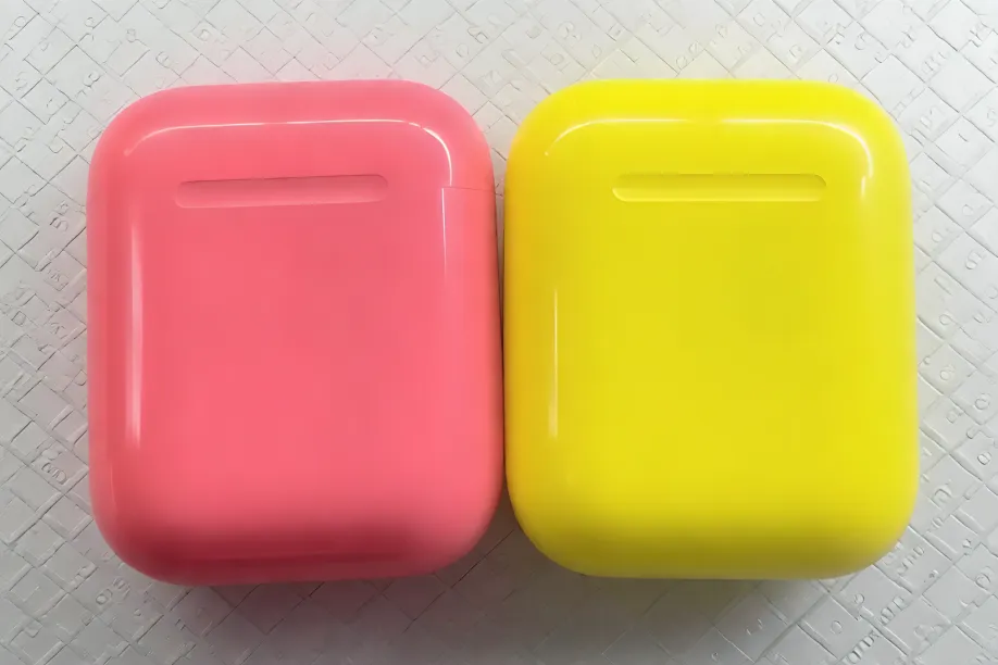 اپل در تلاش برای ایجاد تنوع رنگی، نمونههایی از ایرپاد نسل اول با کیس شارژ صورتی و زرد ساخته بود. این رنگها تنها روی پوسته بیرونی اعمال شده بودند و خود ایربادها همچنان سفید باقی ماندند. هدف اپل، هماهنگی با رنگبندی آیفون 5c بود، اما هیچگاه به مرحله تولید انبوه نرسید.